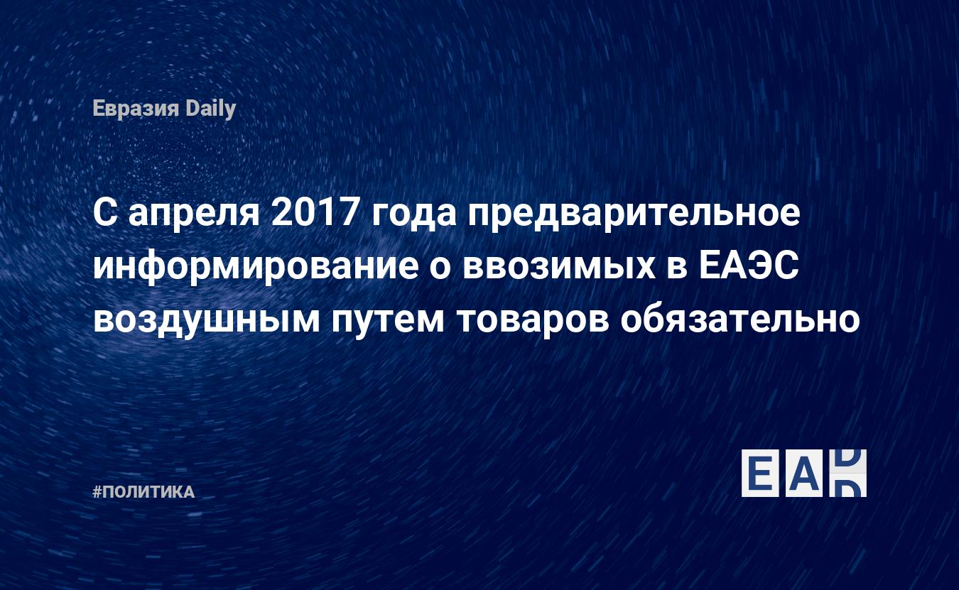 Решением коллегии Евразийской экономической комиссии (ЕЭК) с 1 апреля 2017 года вводится обязательное предварительное информирование в отношении товаров, ввозимых на таможенную территорию Евразийского экономического союза (ЕАЭС) воздушным транспортом. Решение позволит обеспечить таможенным органам Союза возможность проведения предварительного анализа в отношении ввозимого товара. Это необходимо для принятия предварительного решения о проведении таможенного контроля до прибытия товара на территорию Союза. Об этом EADaily сообщили в пресс-службе (ЕЭК).