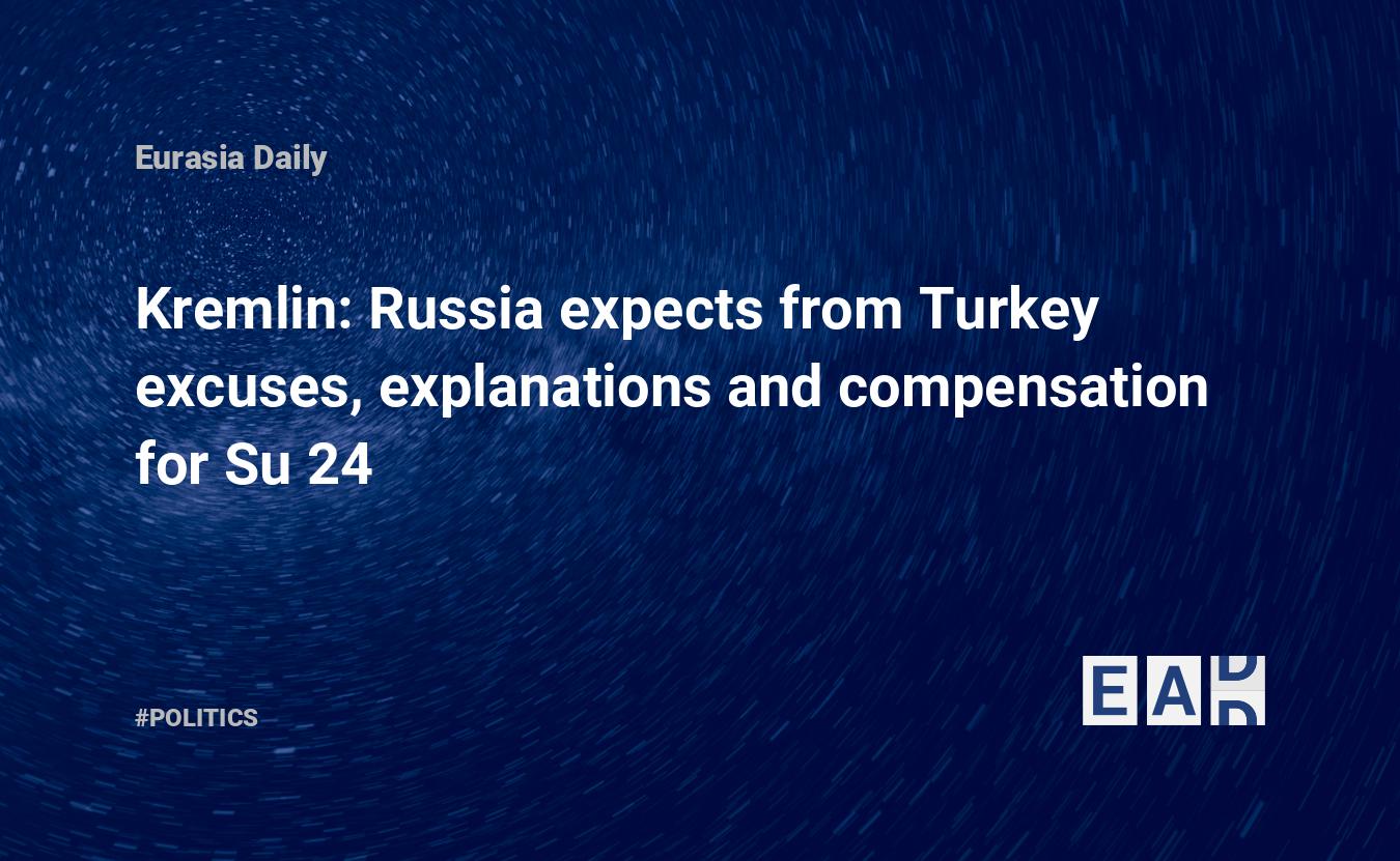 Russia is expecting that Turkey will provide its excuses, explanations and compensation for the Su 24 fighter shot down above the border with Syria, Russian president’s spokesman Dmitry Peskov has announced today while commenting Turkish President Recep Tayyip Erdogan’s statement that he did not comprehend what Russia was waiting for from Turkey to normalize the relations between the two countries.