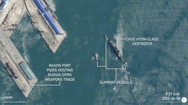 Satellite images taken on June 8 by Maxar Technologies recorded a 5,000-ton destroyer in the dry dock of the port of Rajin, near the border with Russia, CNN points out.