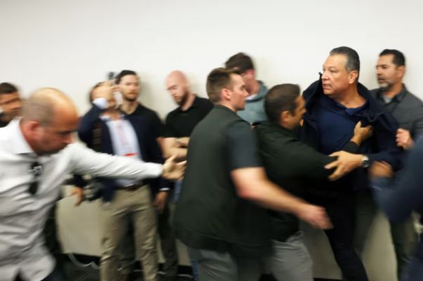After that, several men pushed the senator out of the room. It was unclear, writes NBC News, who these men were, since some of them were in civilian clothes.