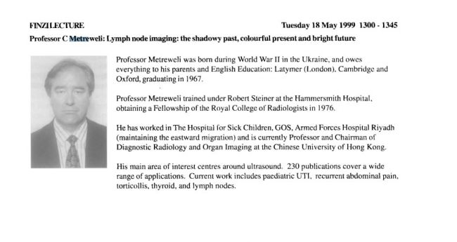 He also found a photo of her father posted on the 10th page of the program of the scientific conference "Radiology-1999", held in Birmingham in May 1999. But the most interesting thing is not the photo, but the first phrase of the curriculum vitae: