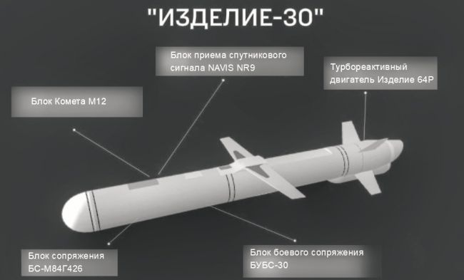 The wingspan of the "Product 30" is about three meters, the warhead weighs 790 kilograms with a range of at least 150 kilometers. Such a rocket has a compact turbojet engine, which gives it a cruising speed of 720 km/h.