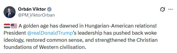 "The leadership of President Donald Trump has pushed aside the "vook" ideology, restored common sense and strengthened the Christian foundations of Western civilization," Orban writes on the social network.