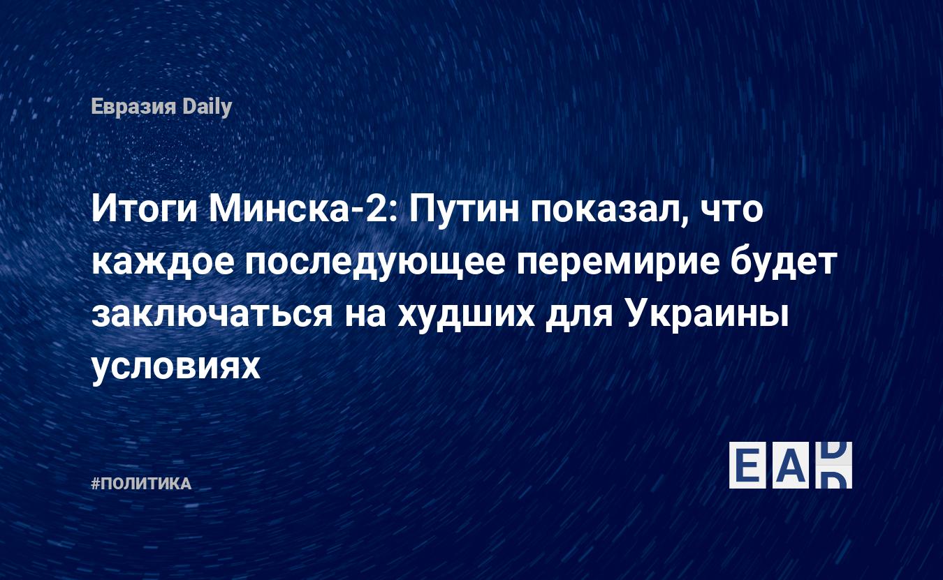 В свою очередь президент Путин продемонстрировал Минском-2, что каждое последующее перемирие с Украиной будет заключаться на худших для нее условиях. После начала перемирия Россия косвенно показала готовность на следующем этапе военного конфликта сформировать правительство Украины в изгнании. 23 февраля в интервью президента Путина ВГТРК косвенным образом посредством заданного вопроса журналиста — «в случае эскалации вооруженных действий со стороны Украины и национальных батальонов возможно ли проведение «Минска-3» или проведение Россией экстренных дипломатических мер вплоть до признания ДНР и ЛНР? — была обозначена угроза Киеву, попытайся он нарушить перемирие или уйти от выполнения пунктов, предусмотренных «Комплексом мер по выполнению Минских соглашений» от 12 февраля 2015 года. Россия демонстрирует ЕС и США готовность урегулировать конфликт на Украине путем хотя бы его временной заморозки. В США и ЕС проницательные наблюдатели понимают, что утверждения о том, что Россия получила большие преимущества из последнего Минского соглашения в любом случае преувеличены. Москва владеет Крымом без признания Западом. Долгосрочную цель восстановления российского доминирования на постсоветском пространстве Кремлю пришлось разменять на возможность ограниченного влияния на Украину. «Особый статус» региона Донбасс, предусмотренный в Минске, рассматривается как гарантия пределов российского влияния на Украину. Одновременно демаркационная линия минского урегулирования ограничивает территориальные амбиции и сводит на нет проект Новороссии при том условии, что проект «Украина — не Россия» сохраняется. Является ли подобный размен равнозначным? По-видимому, нет. Но при условии, что плохо структурированная и слабо консолидированная Россия получает «плохой мир», тогда — да.