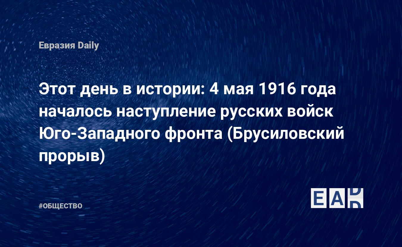 Этот день в истории: 4 мая 1916 года началось наступление русских войск Юго-Западного фронта (Брусиловский прорыв)