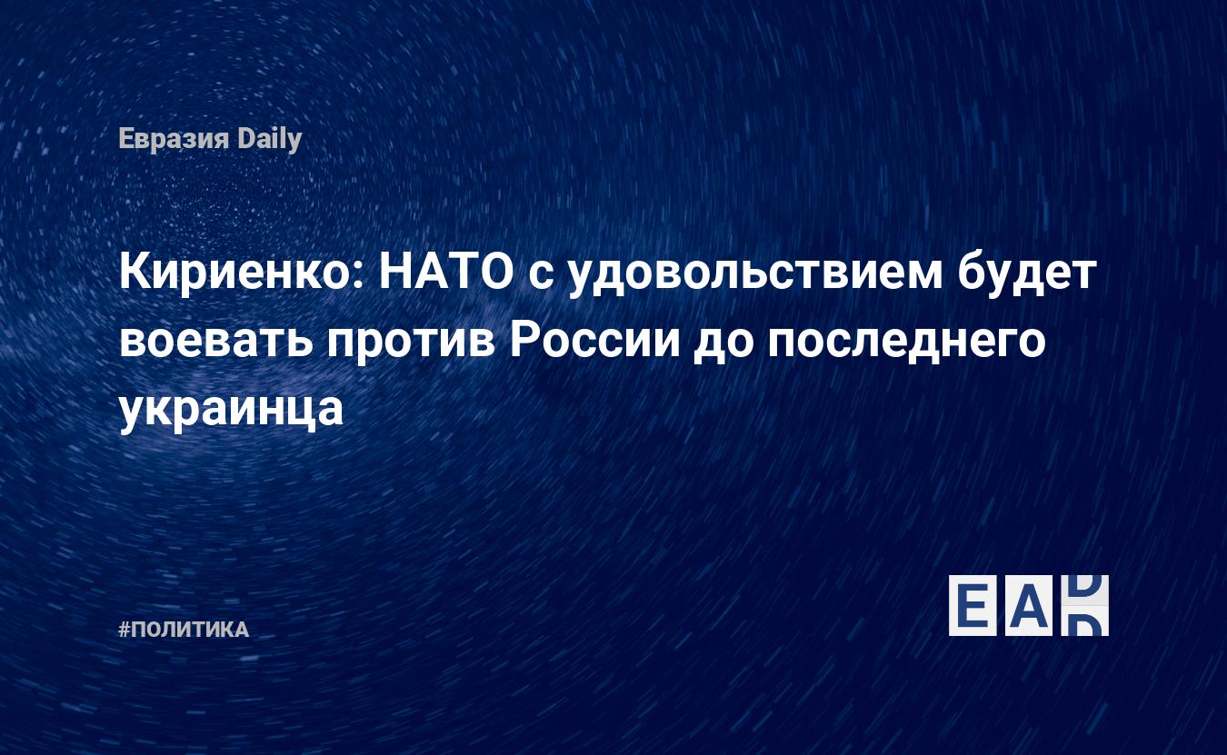НАТО будет с удовольствием воевать на территории Украины против России «до последнего украинца», заявил сегодня, 10 августа, первый заместитель руководителя администрации президента РФ Сергей Кириенко в ходе церемонии открытия форума молодых политологов России «Дигория».