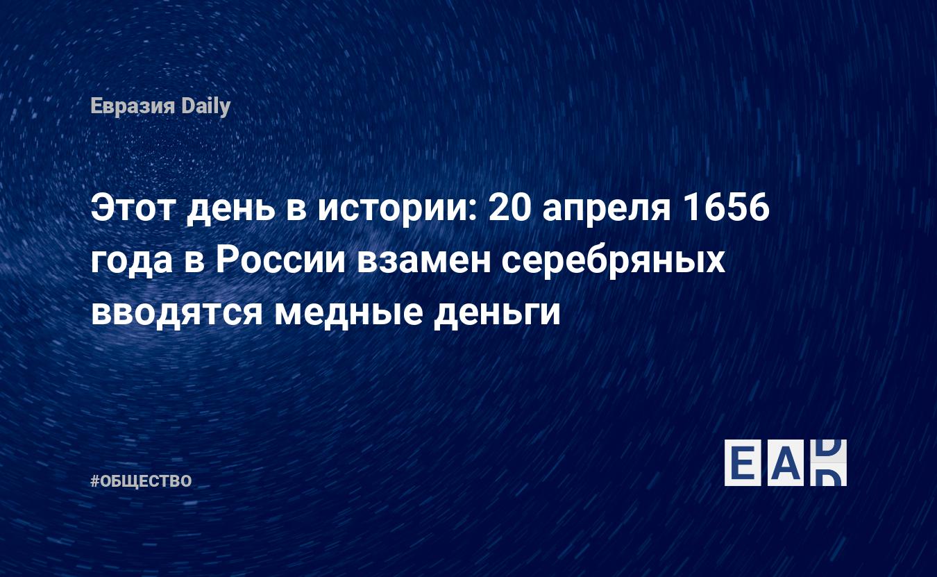 20 апреля 1656 года по указу царя Алексея Михайловича в России были пущены в оборот медные деньги взамен серебряных.