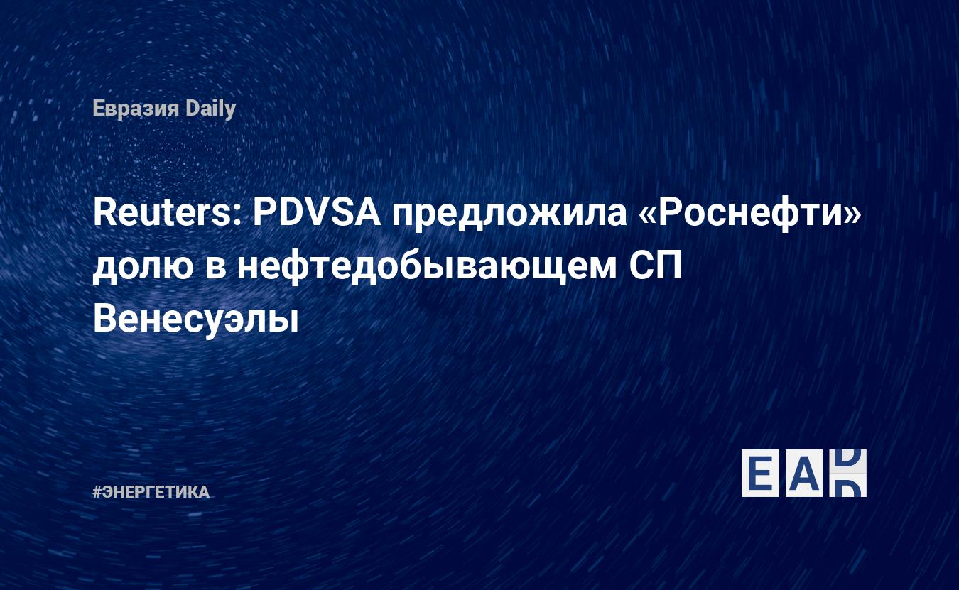Государственная нефтяная компания Венесуэлы (PDVSA) предложила «Роснефти» приобрести 10%-ную долю в предприятии Petropiar по добыче сверхтяжелой нефти в районе нефтяного пояса Ориноко. Об этом сообщает Reuters со ссылкой на пять отраслевых источников.