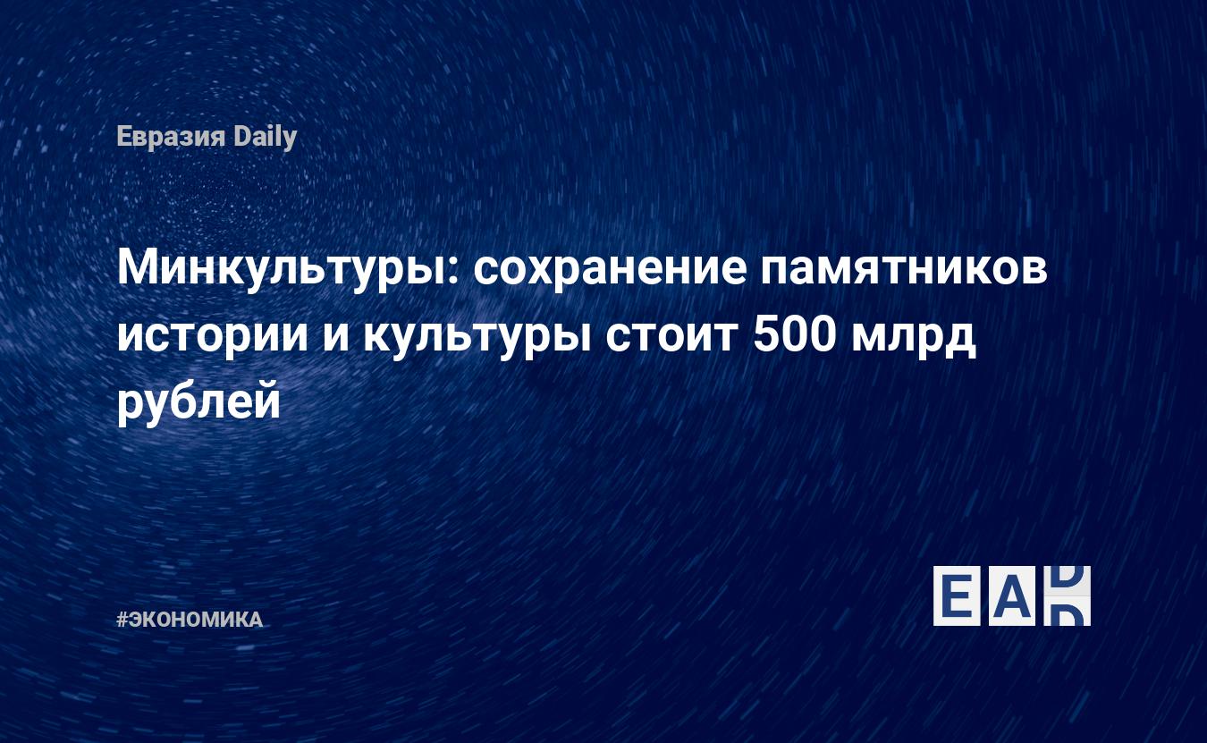 Руководитель распорядительной дирекции Министерства культуры РФ Вадим Соловьев в ходе столичной конференции «Инвестиции в историю: пятиэтажка, которую никогда не снесут» сообщил, что для восстановления российских памятников истории и культуры необходимо около 400−500 млрд рублей.