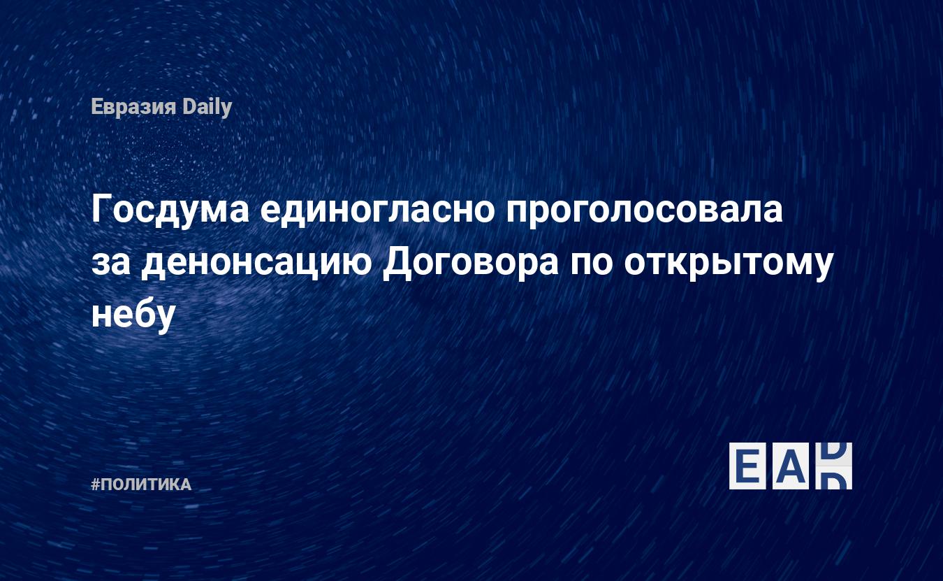 Депутаты Госдумы сегодня, 19 мая, на пленарном заседании единогласно поддержали инициированный президентом РФ Владимиром Путиным законопроект о выходе России из Договора по открытому небу (ДОН).