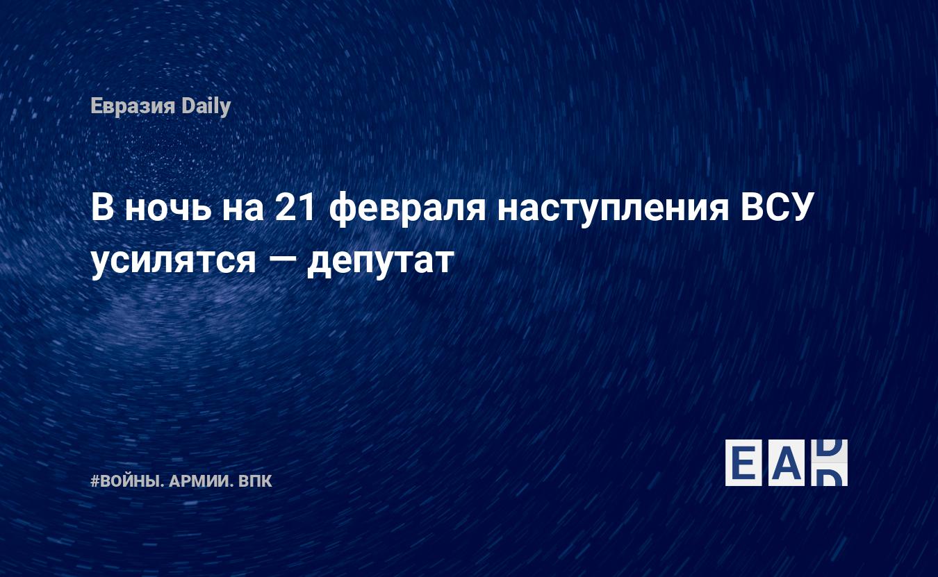 Наступления Вооруженных сил Украины (ВСУ) могут быть усилены в ночь на понедельник на подходах к Донецку и Луганску. Об это заявил в воскресенье первый зампредседателя комитета Госдумы по делам СНГ, евразийской интеграции и связям с соотечественниками Виктор Водолацкий, сообщает сегодня, 20 февраля, ТАСС.