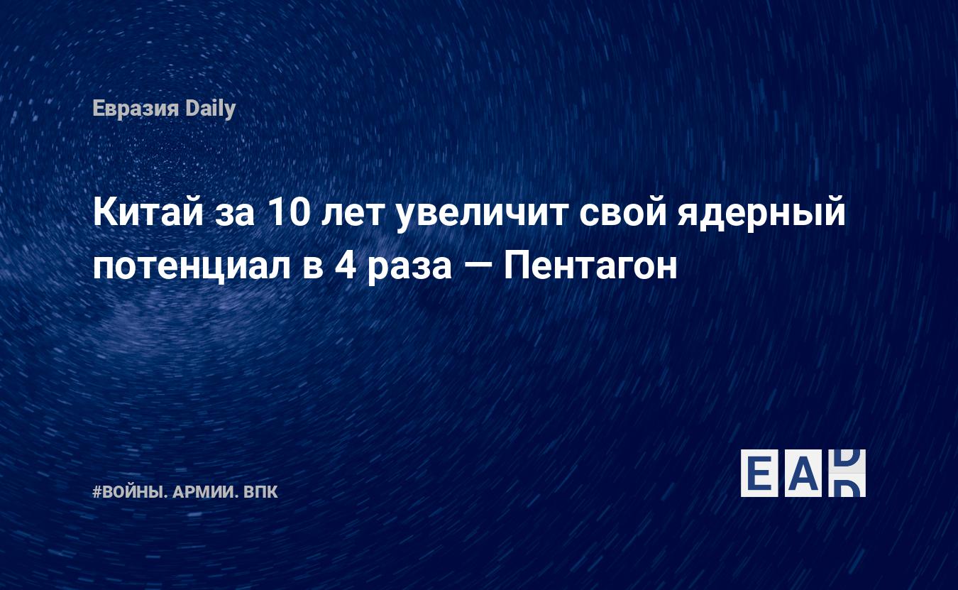 Китай в течение ближайших десяти лет способен увеличить свой ядерный арсенал до четырех раз. Такой прогноз озвучил заместитель министра обороны США по политическим делам Колин Кол, сообщает сегодня, 15 июня, ТАСС.