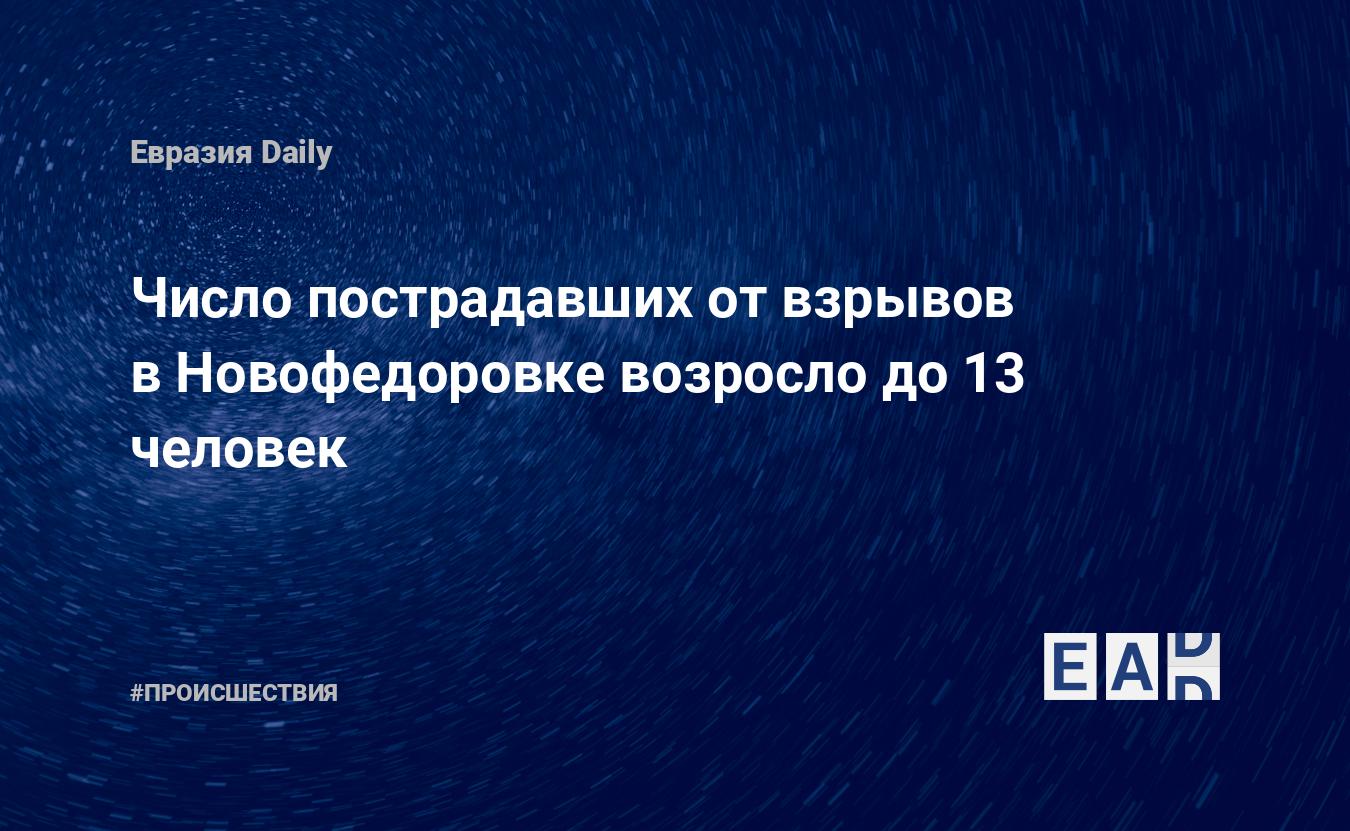 Число пострадавших в результате взрывов на военном аэродроме в Новофедоровке в Сакском районе Крыма увеличилось до 13 человек. Число погибших осталось прежним — один человек.