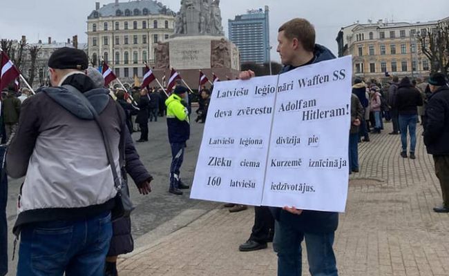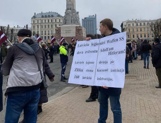 «Не стоит село без праведника — это сегодня про муниципального депутата Андрея Пагора, который вышел к шествию ветеранов и наследников Латышского легиона СС в центре Риги с плакатом „Латышские легионеры давали присягу Адольфу Гитлеру!“. До него в Риге много лет жил дедушка-музыкант, который каждый год 16 марта выходил на центральный проспект и играл на гармошке шествию Латышского легиона СС „Прощание славянки“. Пока в Латвии есть такие люди, есть и надежда, что реабилитация нацистов и героизация ваффен СС так и не станет новой нормальностью».