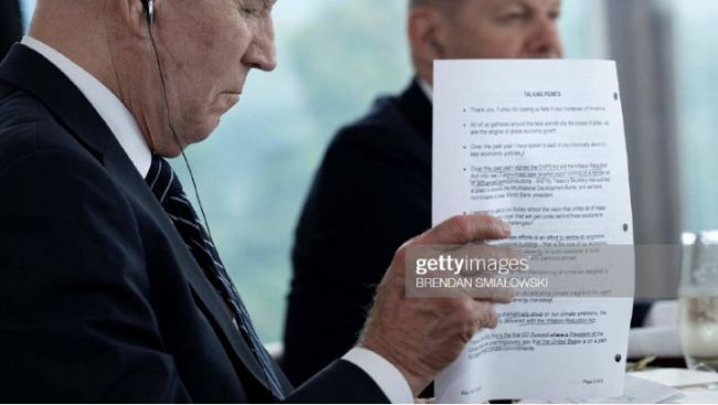 На саммите «Большой семерки» в японской Хиросиме президент США Джо Байден снова пользовался шпаргалкой. Об этом пишет телеграм-канал «Пул № 3».
