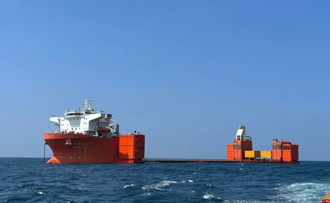 По данным gCaptain, Wei Xiao Tian Shi перевозило модули от Wison New Energies. Этот технологический партнер «Новатэка» заявил накануне о выходе из проектов в России. И, по данным АИС судов, объявление об отказе от российских проектов совпадает с разворотом полупогружного судна.