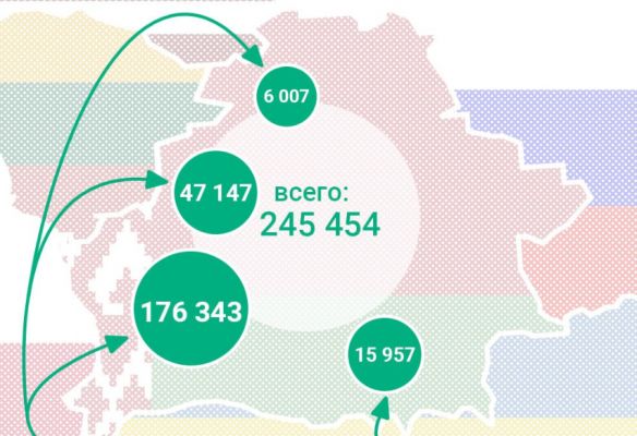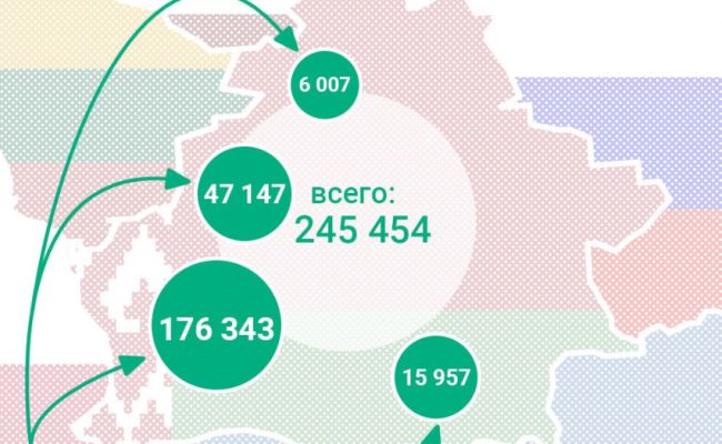 «Всего с 24 февраля 2022 года в Белоруссию с украинской территории прибыло 245 454 гражданина Украины: через украинско-белорусскую границу — 15 957, транзитом через Польшу — 176 343, через Литву — 47 147, через Латвию — 6 007», — говорится в сообщении.