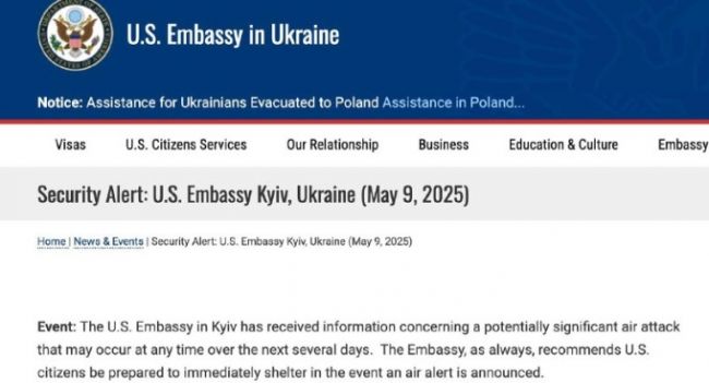 «Посольство США в Киеве получило информацию о потенциально серьезной воздушной атаке, которая может произойти в любое время в течение следующих нескольких дней», — говорится в сообщении, которое цитирует издание «Страна».