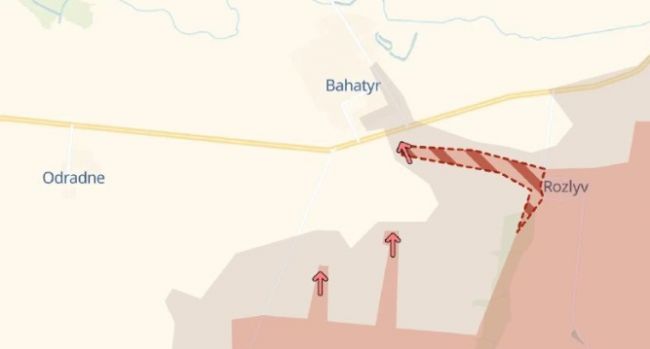 Согласно карте военного паблика Deep State, за минувшие сутки Российская армия продвинулась к Богатырю со стороны Разлива, в самом селе расширилась серая зона.