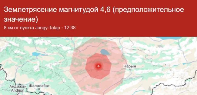Эпицентр находился в 86 км от города Нарын. Толчки ощущались и на юге Казахстане.