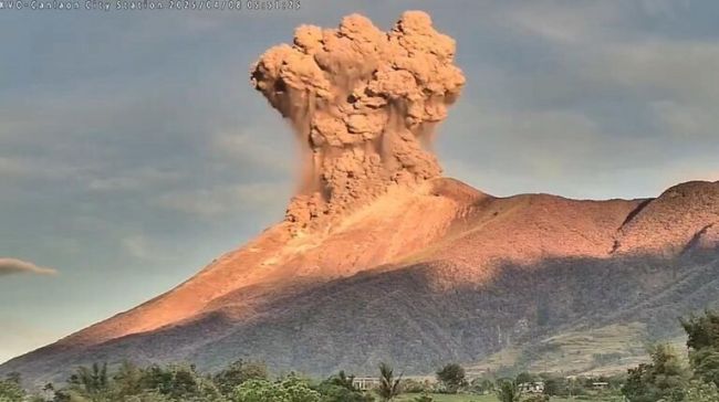 «Тринадцатого мая 2025 года в 02.55 утра (12 мая в 21.55 мск) в вершинном кратере вулкана Канлаон произошло умеренно взрывное извержение, которое… продолжалось пять минут. В результате извержения образовался сероватый объемный столб, который поднялся примерно на 4,5 километра, а затем переместился на юго-запад», — говорится в сообщении института.