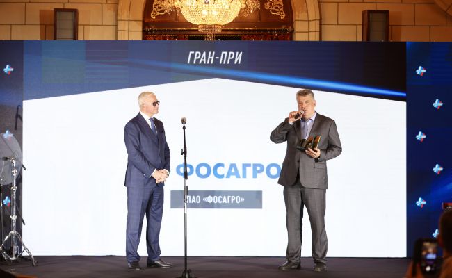 Традиционным участником конкурса РСПП является и ФосАгро. Более того, компания — единственный четырехкратный обладатель его Гран-при. Факт очередной большой победы ФосАгро стал в свою очередь предметом для шутки, которую в ходе церемонии озвучил со сцены президент РСПП.