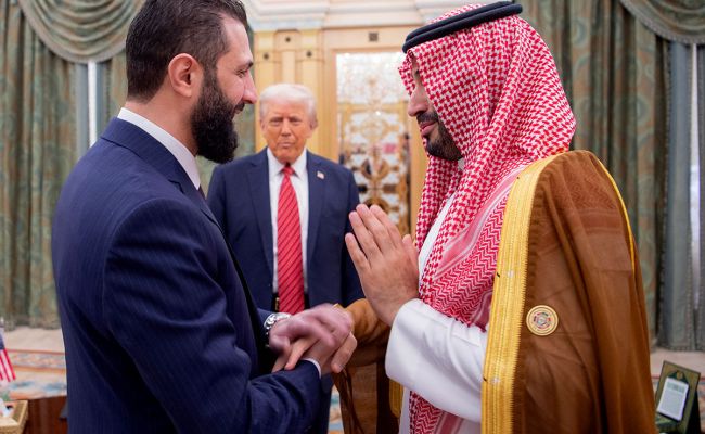 Попытки легитимизации нового режима через экономику получили развитие во внешнеполитической плоскости. Ахмед аш-Шараа 7 мая совершил первый официальный визит за пределы региона — во Францию. Его прием президентом Эммануэлем Макроном стал сигналом о возможности частичной нормализации и признания новой власти при условии прогресса в вопросах безопасности, прав меньшинств и соблюдения международных норм. Во время визита был заключен контракт с французской логистической компанией CMA CGM, получившей управление портом Латакии сроком на 30 лет с обязательством инвестировать в него 230 млн евро. Договор предусматривает деление доходов в пропорции 60% - сирийскому правительству и 40% - французам.