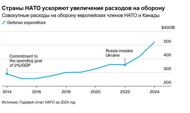 «Наращивание вооружений является частью более широких амбиций по увеличению расходов на оборону во всем альянсе. Подстрекаемые президентом США Дональдом Трампом, члены НАТО объединяются вокруг цели тратить 5% экономического производства — 3,5% на основную оборону и еще 1,5% на расходы, связанные с обороной, на такие области, как инфраструктура, киберзащита и гражданская готовность», — говорится в публикации.