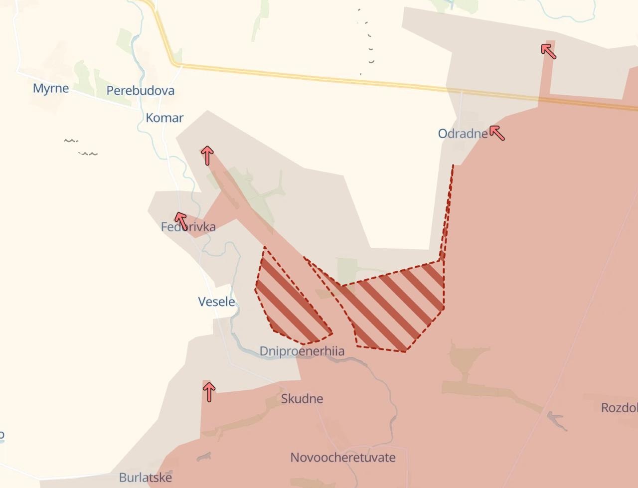 В довершение ко всему, южнее российская группировка войск «Восток» также не отсиживается без дела и продвигается в районе Днепроэнергии, выйдя на подступы тактически важного села Комар. Также была расширена «серая зона» севернее Отрадного, в направлении села Запорожье.