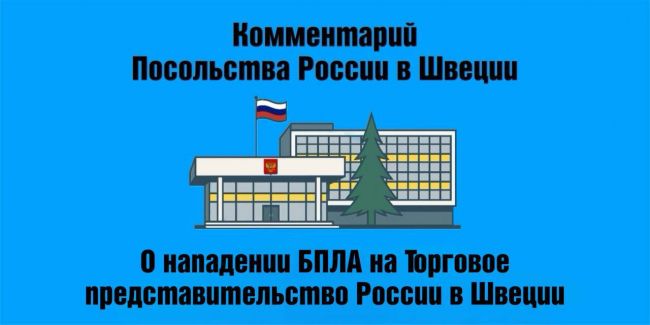 Торговое представительство России в Швеции подверглось нападению беспилотного летательного аппарата (БПЛА), сбросившего пакет с краской перед входом в учреждение. Об этом сообщило посольство РФ в Стокгольме.