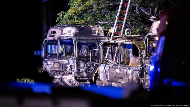 В Тюрингии расследуют странное ЧП: 22 июня в сервисном центре по ремонту большегрузов «МАН» были подожжены грузовики бундесвера. Четыре из них сгорели полностью, ещё два повреждены. Как обычно, винят русских.