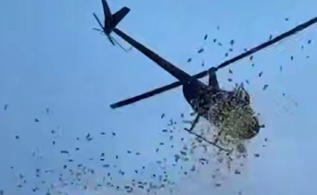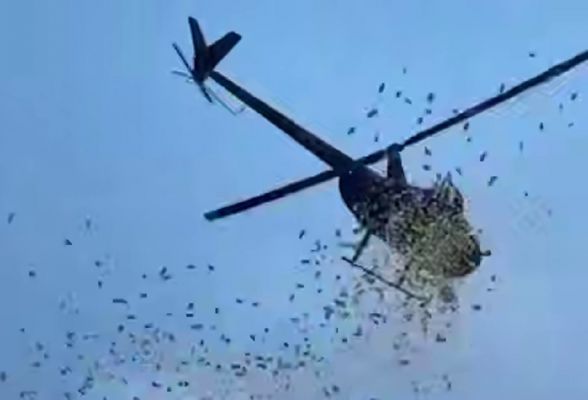 Понятно, что к месту акции сразу же сбежалась толпа любителей халявной наживы. После полудня в небе появился вертолет, с борта которого начали скидывать купюры.