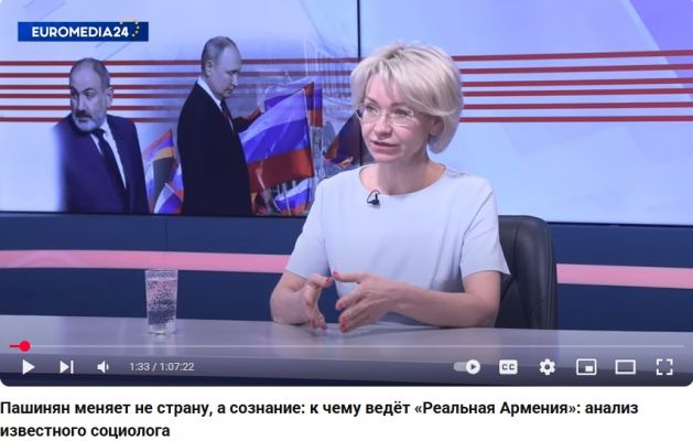 «Информационное поле в Армении сознательно работало на то, чтобы разрушить образ России как защитника (армянского народа — ред.). И те, кто пытался это сделать, сработали эффективно: на короткий период антироссийские настроения охватили значительную часть общества», — заявила в эфире международного телеканала Euromedia24 заместитель директора НИИРК, доктор социологических наук Валентина Комлева.
