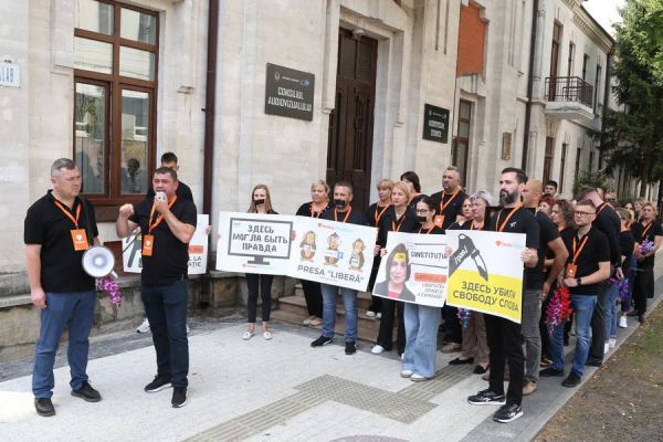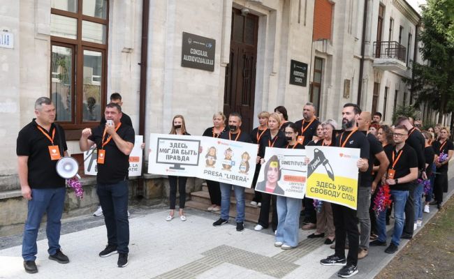 «Здесь убили свободу слова» — под таким лозунгом оппозиционная партия Inima Moldovei («Сердце Молдавии») устроила сегодня, 8 июля, протест у здания аудиовизуального Совета (Совет по телерадиовещанию — СТР).