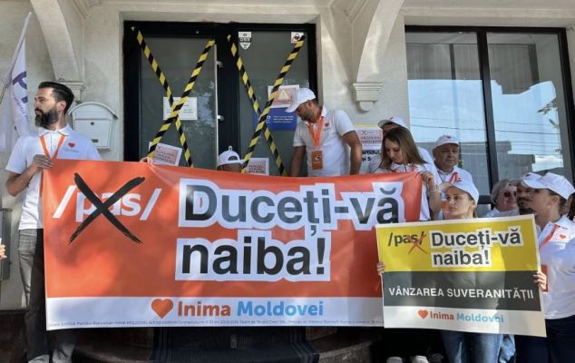 Активисты оппозиционной партии Inima Moldovei («Сердце Молдавии») провели сегодня, 11 июля, акцию «ПДС, давай до свидания!» Они опечатали офис правящей партии «Действие и солидарность», оставив на дверях плакаты «Осторожно: жёлтая угроза!» (желтый — цвет ПДС) и «Опасно для Молдавии!»