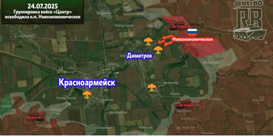 «На красноармейском направлении в результате наступательных действий группировкой войск „Центр“ освобождены населенные пункты Новоэкономическое и Зверево Донецкой Народной Республики», — говорится в сообщении ведомства.
