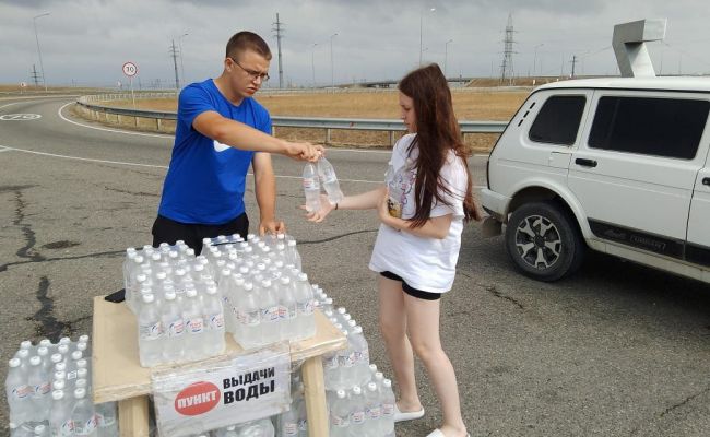 По его данным, воду раздают вдоль трассы со стороны Тамани в двух точках.