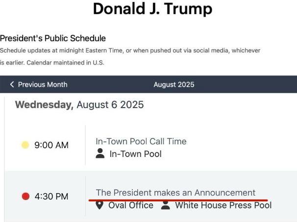 EADaily добавляет, что после переговоров Уиткоффа в Кремле глава Белого дома Дональд Трамп выступит в 23.30 мск со специальным заявлением из Овального кабинета, следует из графика президента США, который привели в Белом доме.