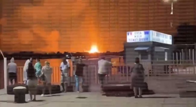 Также в сети появилось видео, снятое с румынского парома. На нем видно огромное зарево пожара в нескольких километрах от берега.