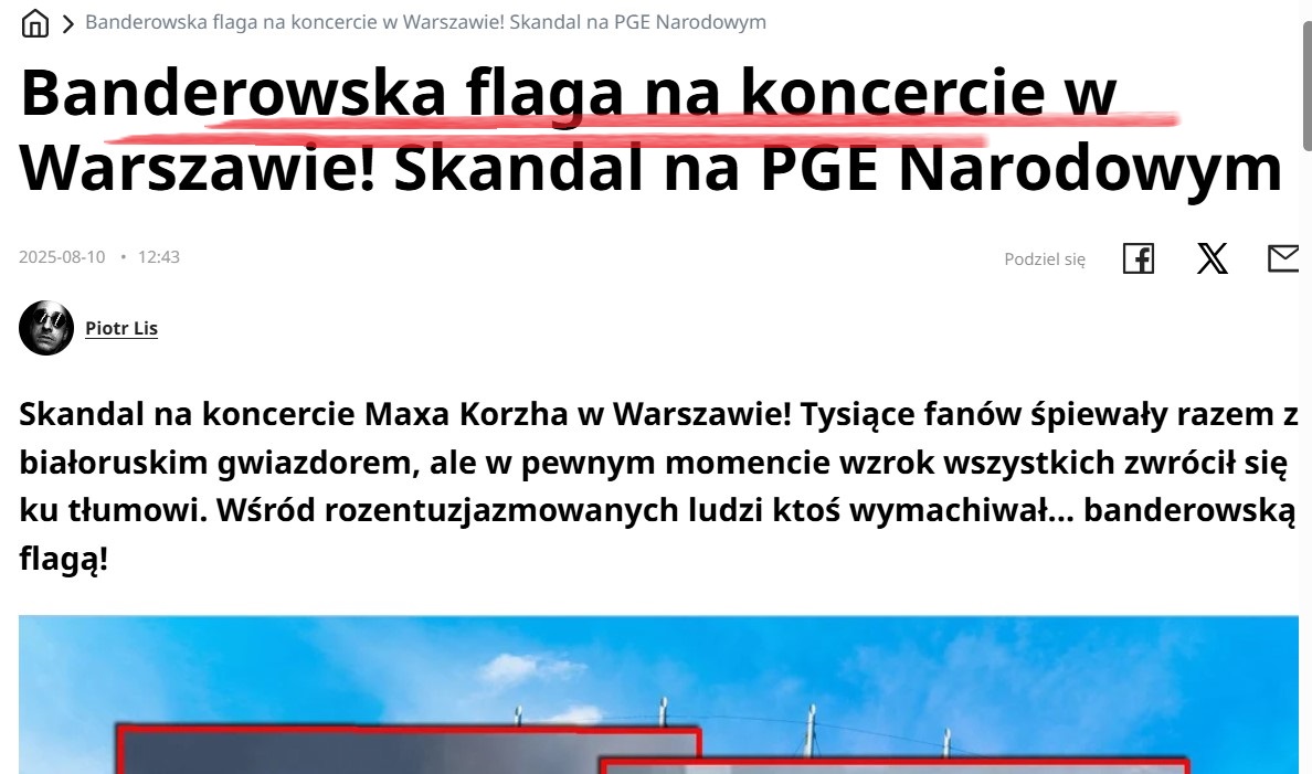 По данным польского таблоида «Супер экспресс», Макс Корж сегодня считается «одним из самых популярных артистов Восточной Европы». Его выступление на варшавском стадионе собрало десятки тысяч болельщиков. В самый разгар концерта в толпе появился хорошо заметный флаг УПА*, который долго развевался над зрителями. «Супер экспресс» вынес в заголовок: