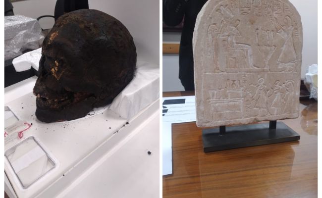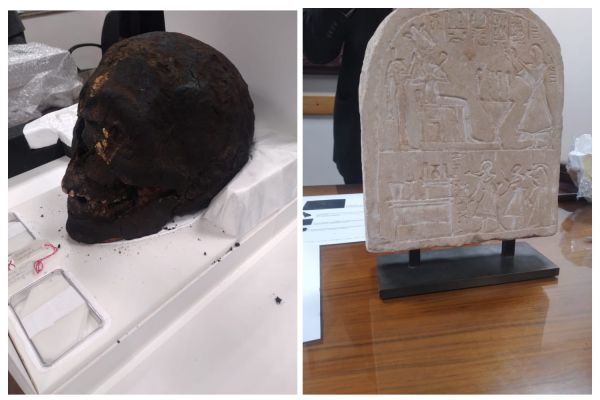 По словам генерального директора Главного управления по репатриации древностей, профессора Шаабана Абдель Гавада, артефакты, найденные в Великобритании, относятся к различным эпохам древнеегипетской цивилизации. Среди них известняковая погребальная стела эпохи Нового царства (1550—1069 годы до н. э.); небольшой красный амулет в форме бабуина, символ защиты, связанный с богами в египетской погребальной традиции, ваза с основанием из зелёного фаянса и небольшая погребальная бутыль из голубого фаянса — оба относятся к XVIII династии (1550—1292 годы до н. э.). Фрагмент бронзовой короны с пером, змеёй и бараном, которая была частью большой статуи бога Осириса, можно датировать периодом между XXII и XXIV династиями. Также были найдены погребальная маска из бусин XXVI династии и несколько погребальных амулетов из фаянса и чёрного камня. Он добавил, что среди найденных в Германии предметов были череп и рука неизвестной мумии, а также амулет со знаком анкх, символом жизни в древнеегипетской цивилизации.