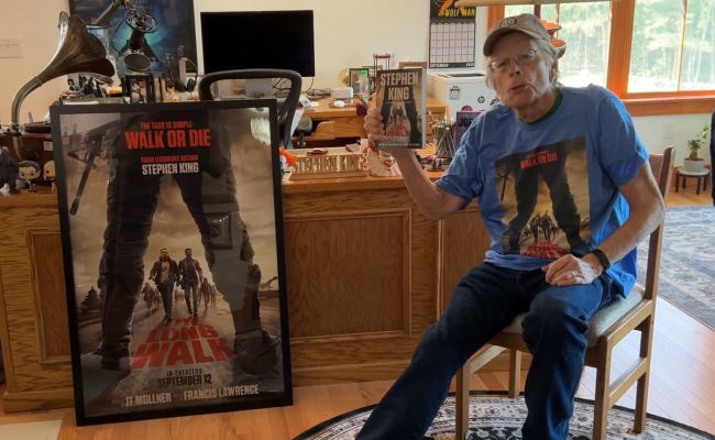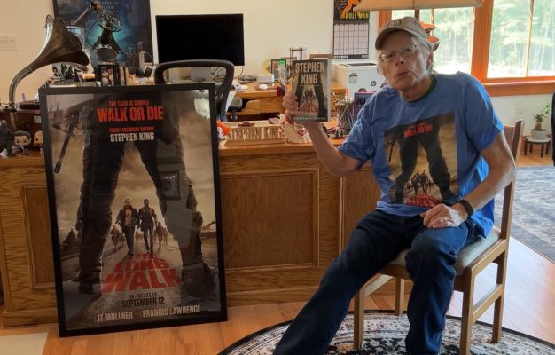 Писатель рекламирует сейчас свою книгу «Долгая прогулка» и одноименный фильм, снятый по ней.