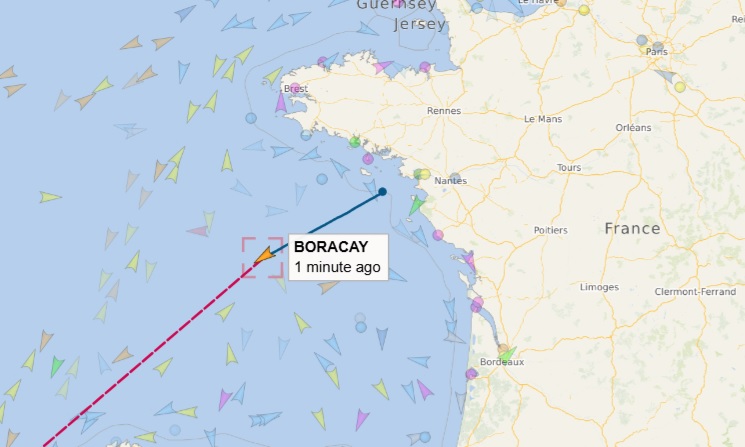 Танкер Boracay покинул место стоянки на границе территориальных вод Франции в Бискайском заливе поздно вечером 2 октября. Об этом говорят данные АИС судов. Танкер, который перевозит до 115 тыс. тонн российской нефти, возвращается на прежний курс и указывает, что планирует прибыть 14 октября к Суэцкому каналу.