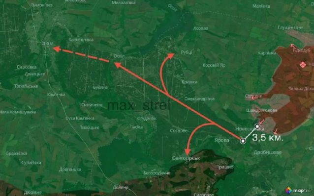 «Не хочу никого пугать, но считаю, что должен предупредить о вероятных рисках… российские войска при поддержке своих элитных подразделений БПЛА „Рубикон“ смогли подобраться к Лиманскому лесу в районе села Новоселовка [ДНР]. Если им удастся одолеть последние 3,5 км, которые отделяют их от леса, то следующие события для нас могут развиваться очень угрожающе», — пишет Стрельник.