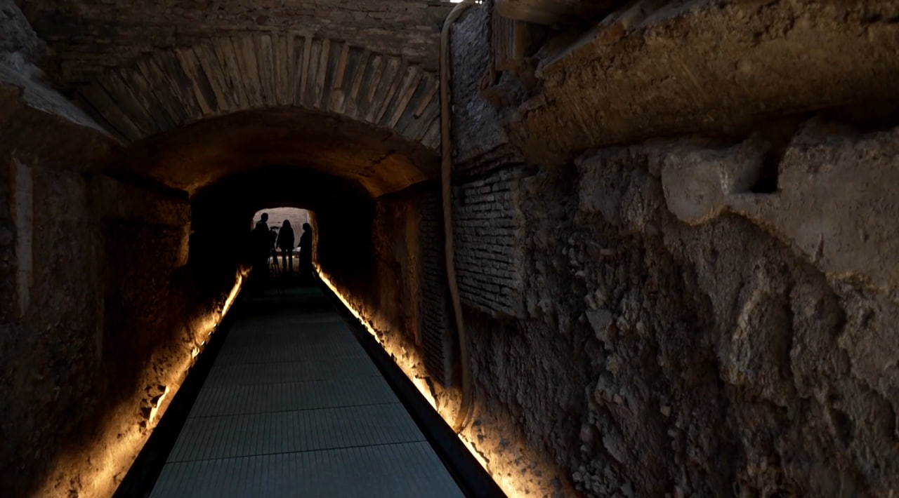 Проход был прорыт в фундаменте Колизея в период между концом I века н. э. и началом II века н. э. в качестве дополнения к первоначальному проекту.