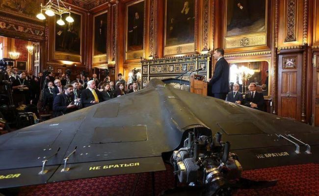 Министр иностранных дел Польши Сикорский, находящийся в Лондоне с официальным визитом, привез в британский парламент БПЛА-камикадзе «Герань», который якобы Россия запускала по Украине.