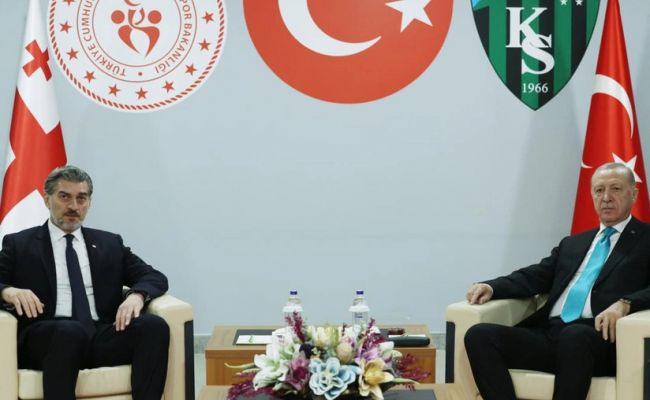 Президент Турции Реджеп Тайип Эрдоган провел встречу с грузинским коллегой Михаилом Кавелашвили в провинции Коджаэли. TRT Haber отмечает, что встреча состоялась в рамках матча отборочного турнира ЧМ-2026 по футболу между сборными Турции и Грузии в Европе.