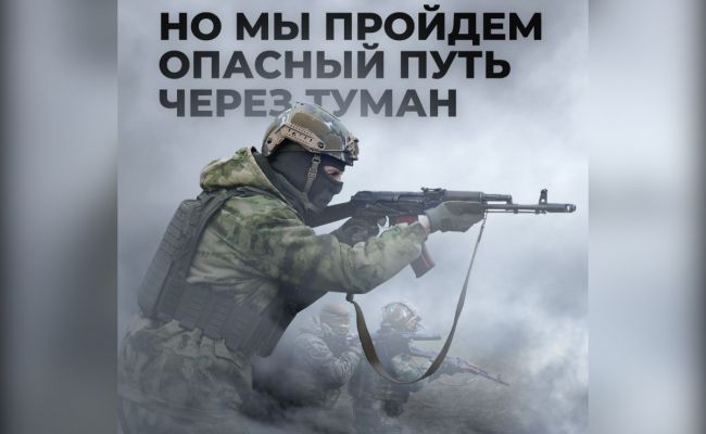 На одном из изображений в телеграм-канале появились слова: «Но мы пройдем опасный путь через туман».