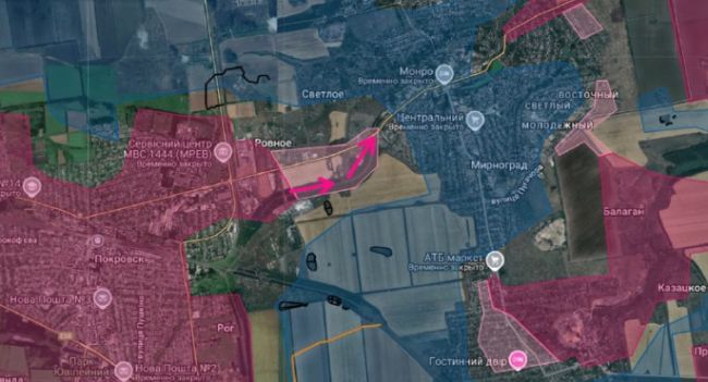 «Поступает информация о том, что штурмовые подразделения ВС РФ, пробившись через опорные пункты ВСУ, вошли в Мирноград со стороны н. п. Ровное», — пишет ТК.