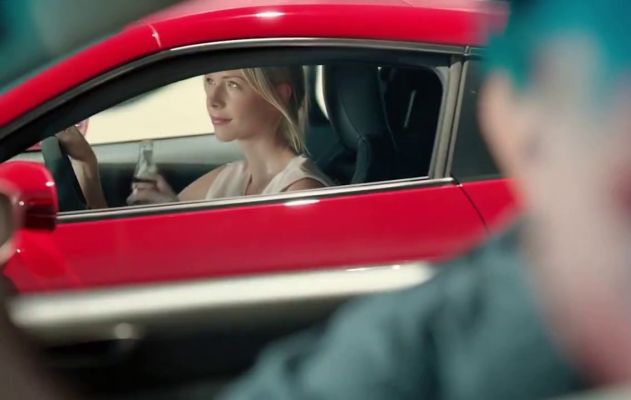 Рядом автомобиль, в котором симпатичная молодая девушка наслаждается прохладой. После оба участника движения трогаются и машина девушки оставляет далеко позади неудачливых нетрадиционалов.